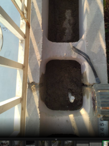 それだけでは安心できないので、ブロック横にある擁壁にもケミカルアンカーをつかって鉄筋をさしこみ強度を増すせっけいにしています。