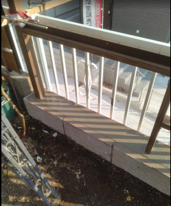 先日フェンス建てる為に積んだブロックに落ち葉除けフェンスのフレームを建て込みます。