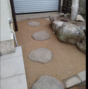 日が当たりにくい場所は固まる土にすると、コケが付きやすい現状です。