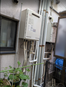 給湯器などがあり、裏庭?というよりバックヤードです。