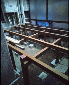 ウッドデッキの構造部分を組み終わったころには日が暮れていました。