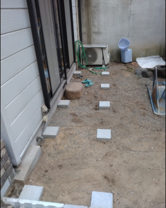ウッドデッキを据えるためにの束石です。 リビング窓より出るためのウッドデッキです。