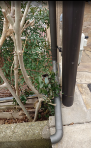 雨樋は タニタハウジングウェア のガルバリウム鋼板雨樋 です。 色は ガンメタ。