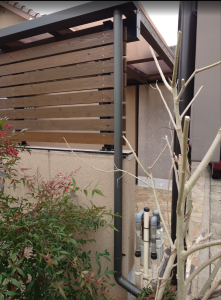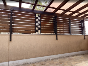 横からの雨の吹込みも兼ねた木製フェンス