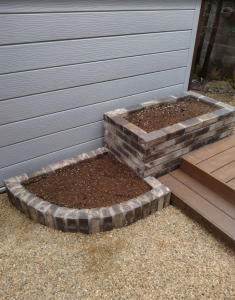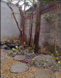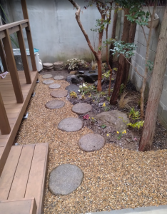 花壇は真砂土を入れて、バーグ堆肥、パーライトを入れて土壌改良しています。