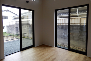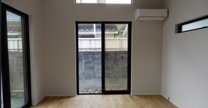 玄関からリビングのドアを開け、入室すると正面に見える窓です。 ご帰宅のご主人様が一番初めに目にされる場所です。