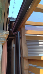 お隣さん側が水下(雨が流れる方向)なので、雨どいをつけました。