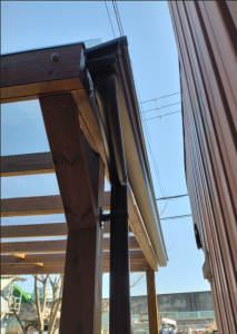 ポリカーボネートのつなぎ目はアルミの平板に防水ゴムをはり水漏れをふせぎます。